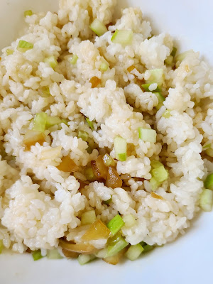 - 잘게 썬 양파를 잘 볶고, 간장으로 간을 하고 버섯, 마늘, 방울토마토를 같이 볶는다.